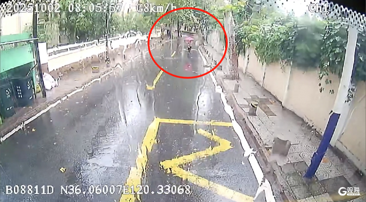 10月2日8時許,陰雨綿綿,道路濕滑。220路駕駛員胡開倫行至小魚山站點,乘客上下車完畢后,車輛即將啟動。就在這時,胡開倫透過雨幕看見遠處一個匆忙的身影——一位撐著傘的乘客正在100多米外奮力奔跑,在濕滑的路面上顯得格外艱難。