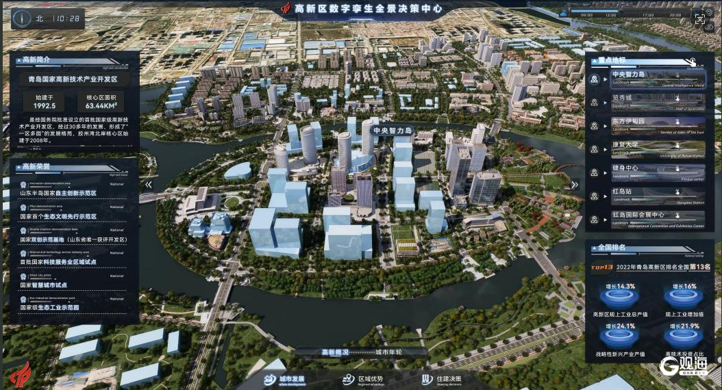 在此基礎上,青島高新區還創新打造“數字孿生全景決策中心”與“重大工程進度遙感監測系統”。兩大系統如同“智慧之眼”與“決策之手”,實現對重點項目的實時監管與動態評估,為城市運行提供可視化、可預測、可調控的智能支撐,助力城市治理者精準把握運行細節,及時優化策略,推動實現精準、高效、有序治理。