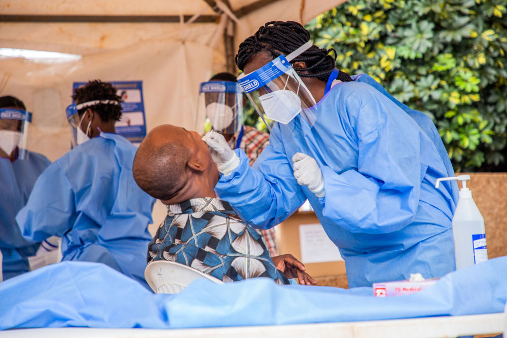 7月2日,醫護人員在盧旺達首都基加利為一名路人進行新冠病毒檢測。新華社發(西里爾·恩德格亞攝)