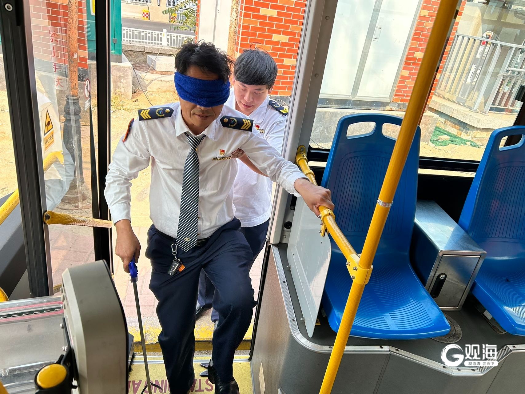 為更好地理解視障群體的需求,嶗山巴士第五分公司駕駛員李剛進行了一次“蒙眼模擬體驗”。李剛蒙上眼睛,步入車廂,在自己感受的每一寸步伐中,深刻體會到視障乘客出行的艱難與挑戰。“蒙上眼睛后,連走路、找座位都變得困難重重。每一層樓梯、每一個小細節都必須特別注意。即使是車廂里的座椅和扶手,我都需要用手去確認。”李剛表示,這次體驗讓他意識到,視障乘客需要更多的引導與幫助,而我們每一位司機,都是他們出行路上的“眼睛”。