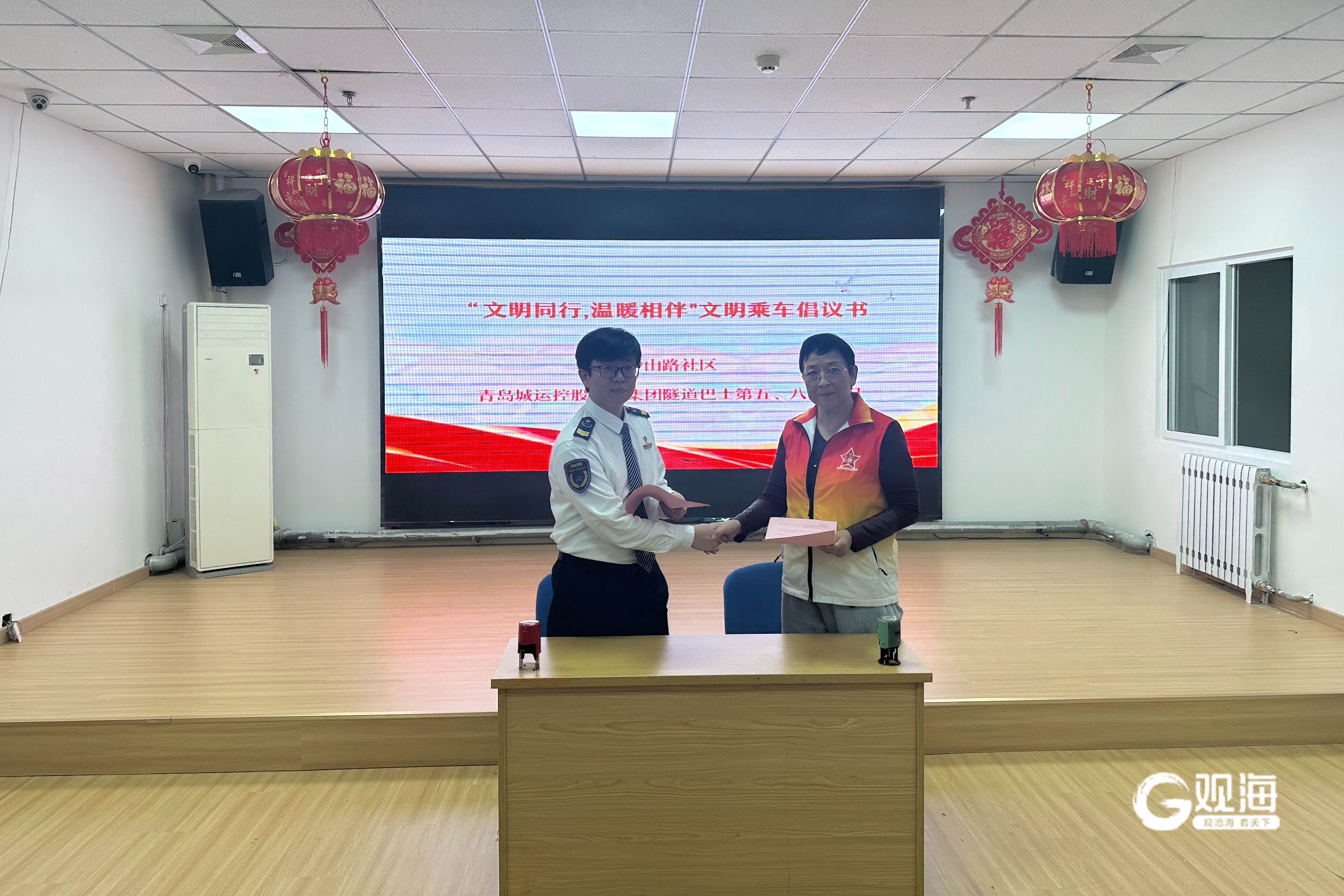 宣講結(jié)束后,中山路社區(qū)領(lǐng)導(dǎo)與青島城運控股公交集團隧道巴士第五、八分公司領(lǐng)導(dǎo)共同簽署了“文明同行,溫暖相伴”文明乘車倡議書。隨后,雙方工作人員將倡議書張貼在社區(qū)公示欄的顯眼位置,方便居民隨時查看,進(jìn)一步擴大文明乘車?yán)砟畹膫鞑シ秶珜?dǎo)更多人參與到文明出行行動中來。