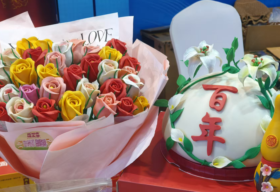 空氣里,絲絲甜香勾住腳步,高家糖球的冰糖外殼咔哧脆,甜意包裹著山楂酸。隔壁展位,王哥莊大饅頭麥香四溢,有著500年歷史傳承的非遺饅頭,不僅成為膠東半島的美食標志,更走入了現代生活的多個場景。百年非遺手藝,原來就藏在誘人的煙火氣里。