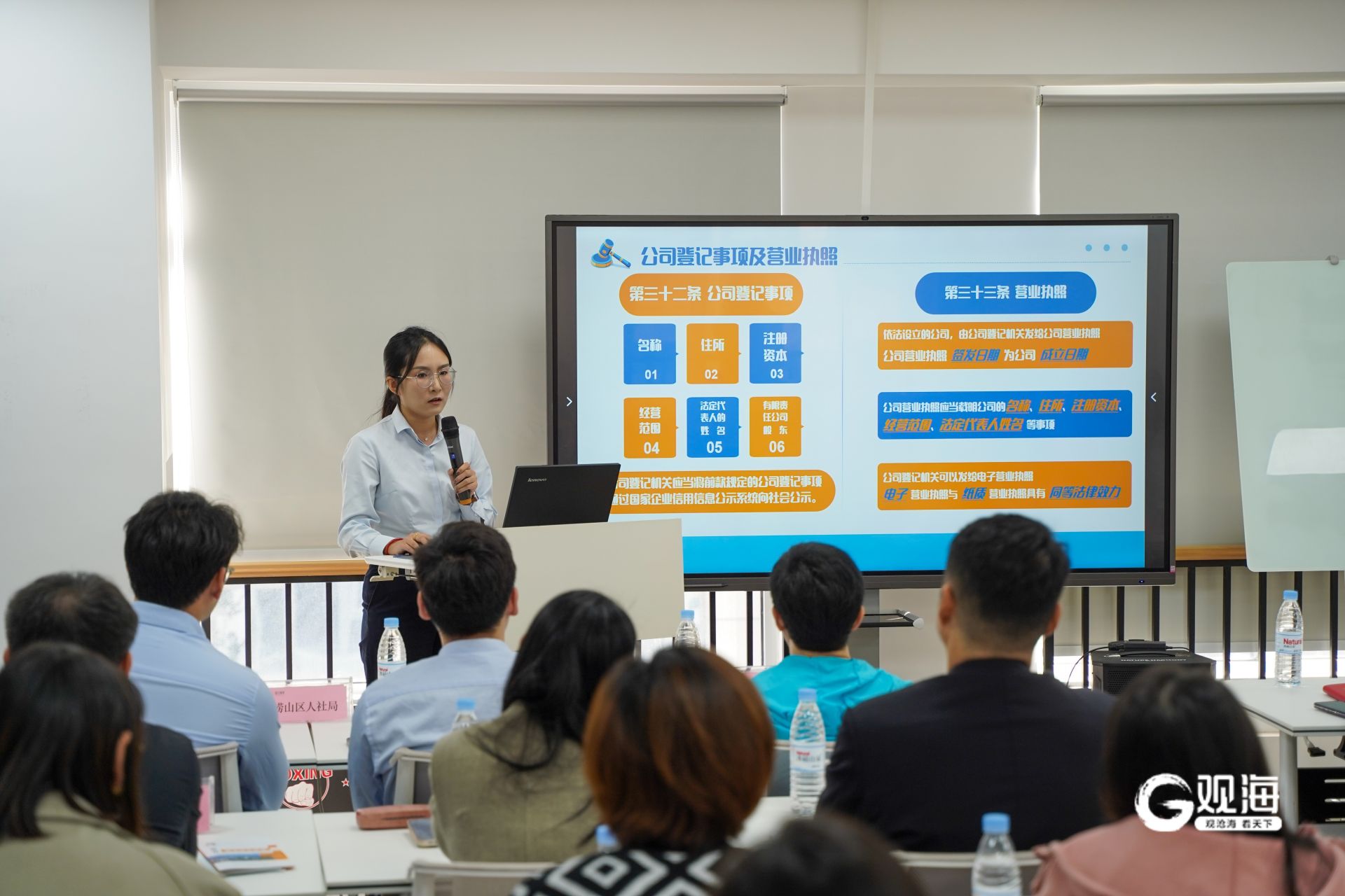 宣講會上,圍繞企業發展全周期各方面需求,嶗山區行政審批局聚焦企業設立培育與高質量發展,詳細解讀《中華人民共和國公司法》重點內容與企業納統政策,區人社局系統講解人才補貼、就業扶持等政策,嶗山稅務局重點講解出口退(免)稅政策,并結合實際業務為風險情形“劃重點”。青島銀行圍繞企業融資介紹配套政策,為企業高質量發展提供金融支撐。現場,宣講員們還與參會企業交流答疑,確保惠企政策真正聽得懂、記得住、用得上。