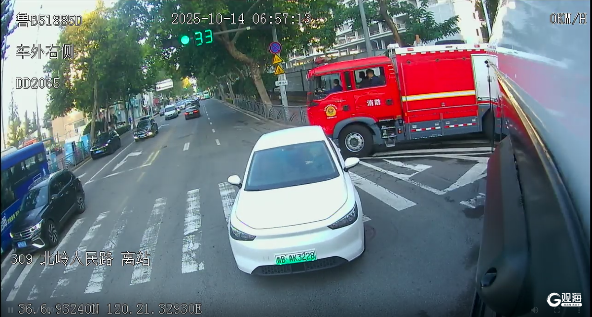 10月14日早晨,309路公交車駕駛員張楊楊也用自己的行動詮釋了禮讓精神,為緊急救援爭取到了寶貴的時間。當天清晨,張楊楊像往常一樣駕駛309路公交車。6點56分,車輛行駛至北嶺人民路車站附近。此時恰逢早高峰,馬路的車流量極大且當時路段在修路,車輛只能緩緩前行,交通略顯擁堵。就在這時,一陣急促的警笛聲傳來,這引起了張楊楊的高度警覺。他立刻通過后視鏡仔細觀察后方的情況,只見兩輛消防車正鳴著警笛匆匆駛來。