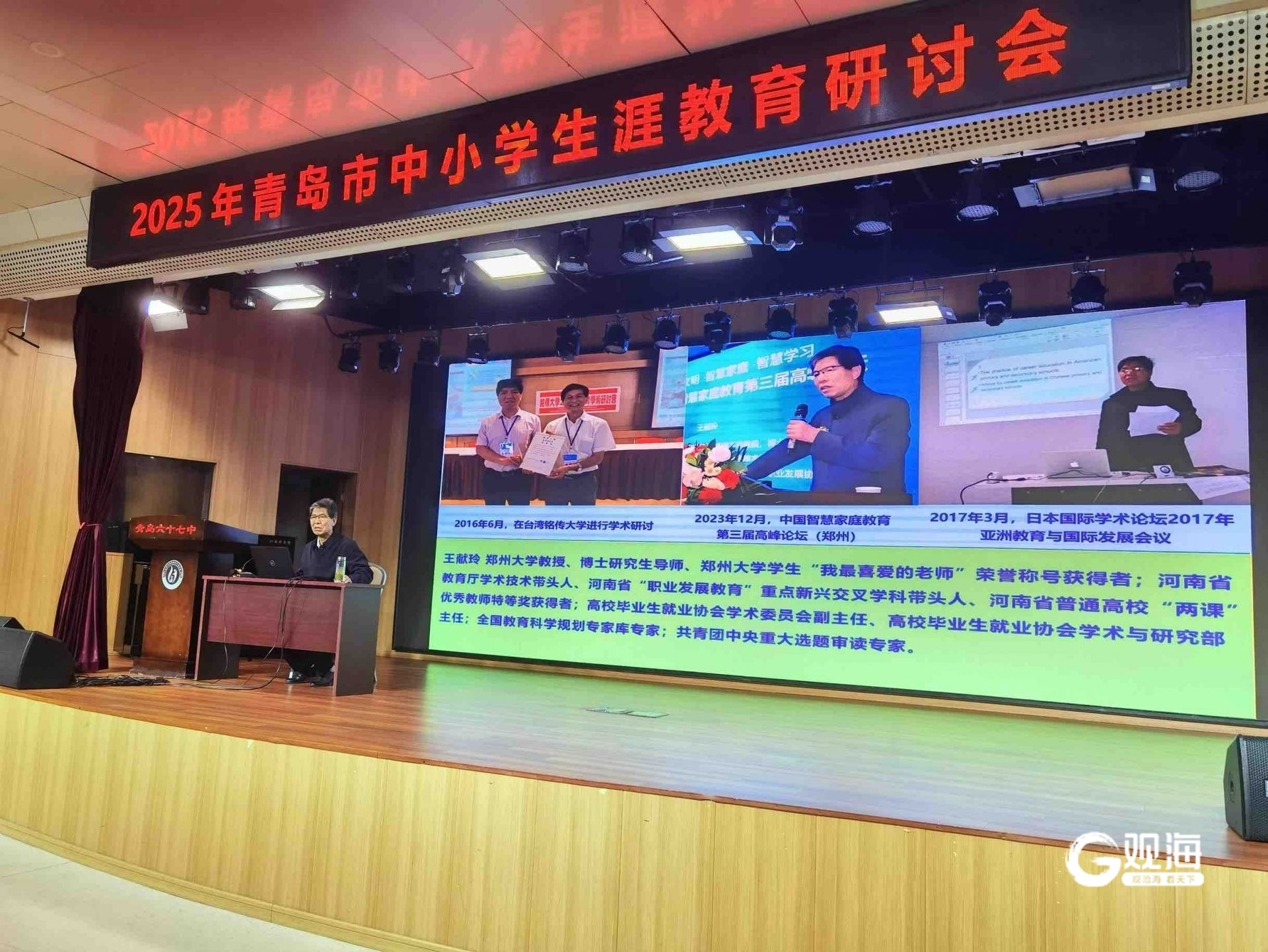 鄭州大學(xué)教授、博士研究生導(dǎo)師王獻(xiàn)玲以《向著生涯 積極引領(lǐng)——中小學(xué)校生涯教育理論與實(shí)踐》為題做了主旨報(bào)告,她以生涯混沌理論、生涯建構(gòu)理論為基礎(chǔ),論述家庭環(huán)境對(duì)青少年生涯發(fā)展的影響以及各學(xué)段學(xué)校生涯教育的特點(diǎn)和銜接點(diǎn)。中國(guó)海洋大學(xué)管理學(xué)院副書記、副院長(zhǎng)喬寶剛以《數(shù)智驅(qū)動(dòng)生涯教育的邏輯進(jìn)路——高校實(shí)踐對(duì)中小學(xué)生涯教育的啟示》為題,系統(tǒng)闡述了數(shù)字智能技術(shù)在生涯教育中的實(shí)踐路徑,數(shù)智賦能生涯教育方面的創(chuàng)新經(jīng)驗(yàn)。