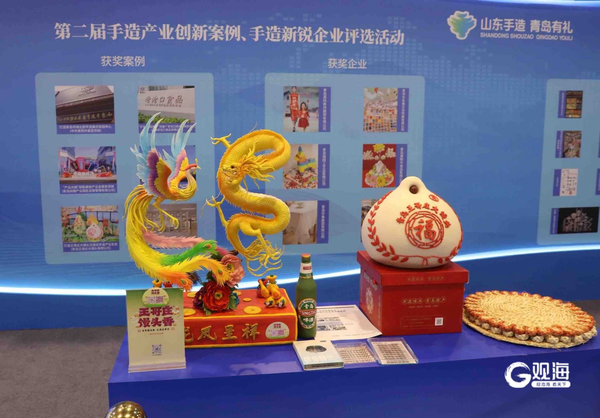 手造節現場展覽涵蓋傳統手造、現代文創和版權IP等50余種特色產品,云集貝雕、王哥莊大饅頭、若七珠寶、平度草編、前豐帽子、即墨衛衣等青島特色手造,以及沿黃九省(區)、上合組織國家的特色手造產品。手藝人們現場演示嶗山炒茶、宋式點茶、齊繡、寧夏麻編、琴簫合奏等技藝,讓觀眾近距離感受傳統文化的魅力。