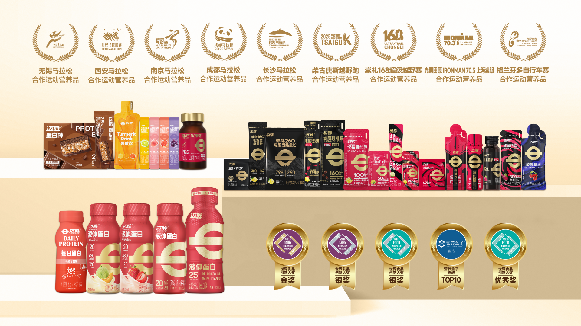 在產品研發方面,邁勝立足于業內首個集專業營養研究、運動表現評估和深度產品研發三位一體的邁勝運動機能實驗室,結合邁勝團隊深度行業經驗和用戶洞察,形成了具有高度差異性的產品競爭力。邁勝現已經完成包含專業賽訓線、日常活力線、各類賽事包以及AI智能產品方案定制工具在內的完整產品線布局,并成功推出中國首創液體蛋白、全球首創液體鹽丸等多個行業乃至全球首創產品,在運動營養品的復配優化、功能性成分留存(如甜菜根液的天然活性物質保護)、消化吸收效率提升等領域形成多項領先專利技術儲備。