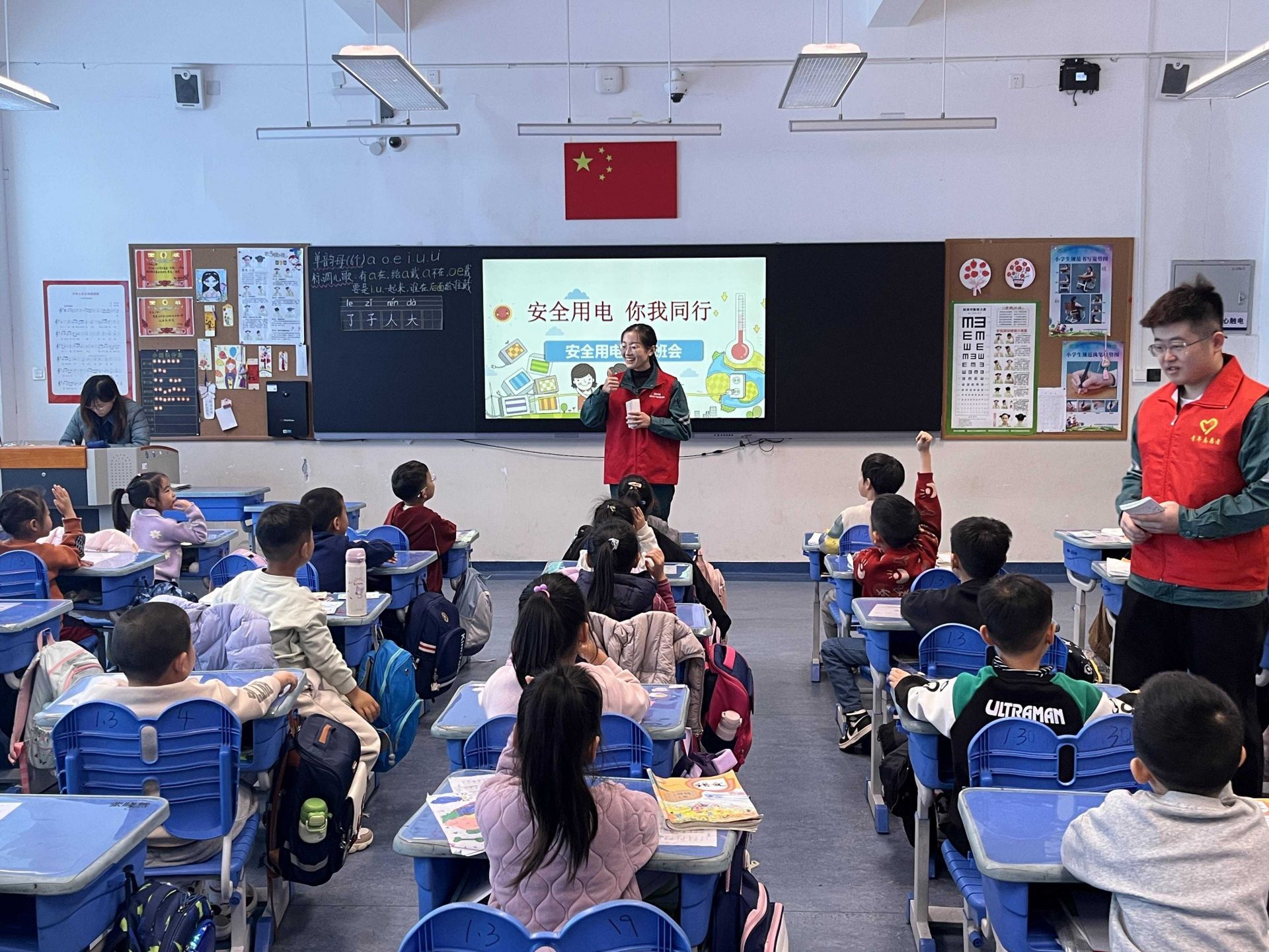 在青島第一中學市南分校小學部,市南供電中心彩虹共產黨員服務隊以“安全用電,你我同行”為主題,為同學們帶來了一場系統深入的科普宣講。隊員們從“電是什么”這一基礎問題入手,結合真實案例,重點剖析了“電的危害”“家庭安全用電指南”“戶外避雷要點”等內容。在互動問答環節,同學們踴躍搶答:“不能用濕布擦電器!”“著火了要先斷電!”通過案例分析和問答互動,學生們掌握了“先斷電、后滅火”“勿用手拉觸電者”等關鍵自救互救知識。
