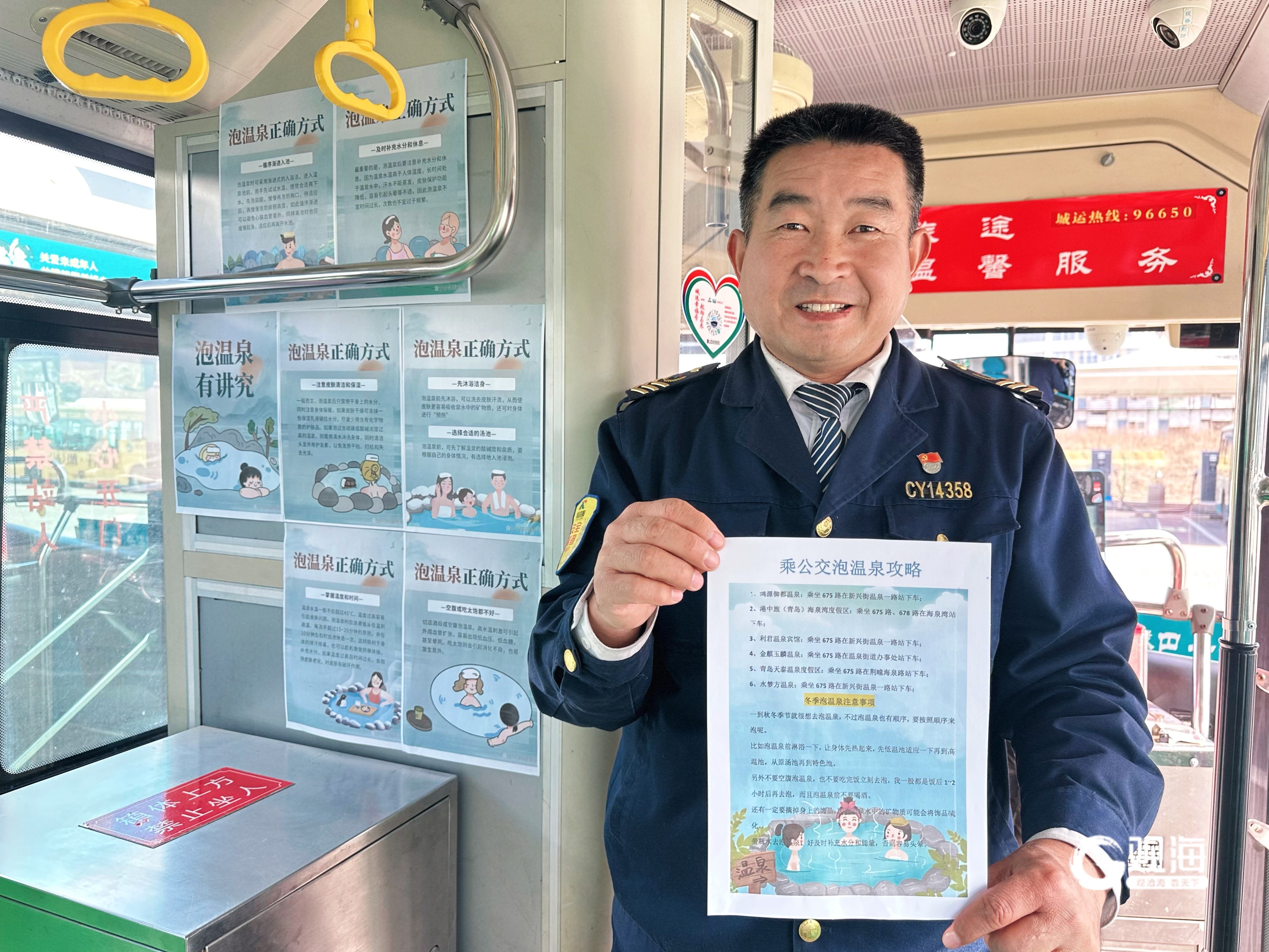“天氣一冷,咨詢溫泉路線的乘客就多起來,有人問在哪站下車,也有人關心哪家溫泉有特色。開車途中逐一解答,既分心也不夠全面。”常年往返溫泉鎮的675路“老司機”劉大剛笑著說道。為更好服務乘客,他利用休息時間實地走訪即墨多家熱門溫泉場所,記錄便捷下車路線與場所特色,并結合權威資料整理出科學泡湯的注意事項,最終形成一張條理清晰、實用易懂的攻略圖,張貼在675路公交車廂內。