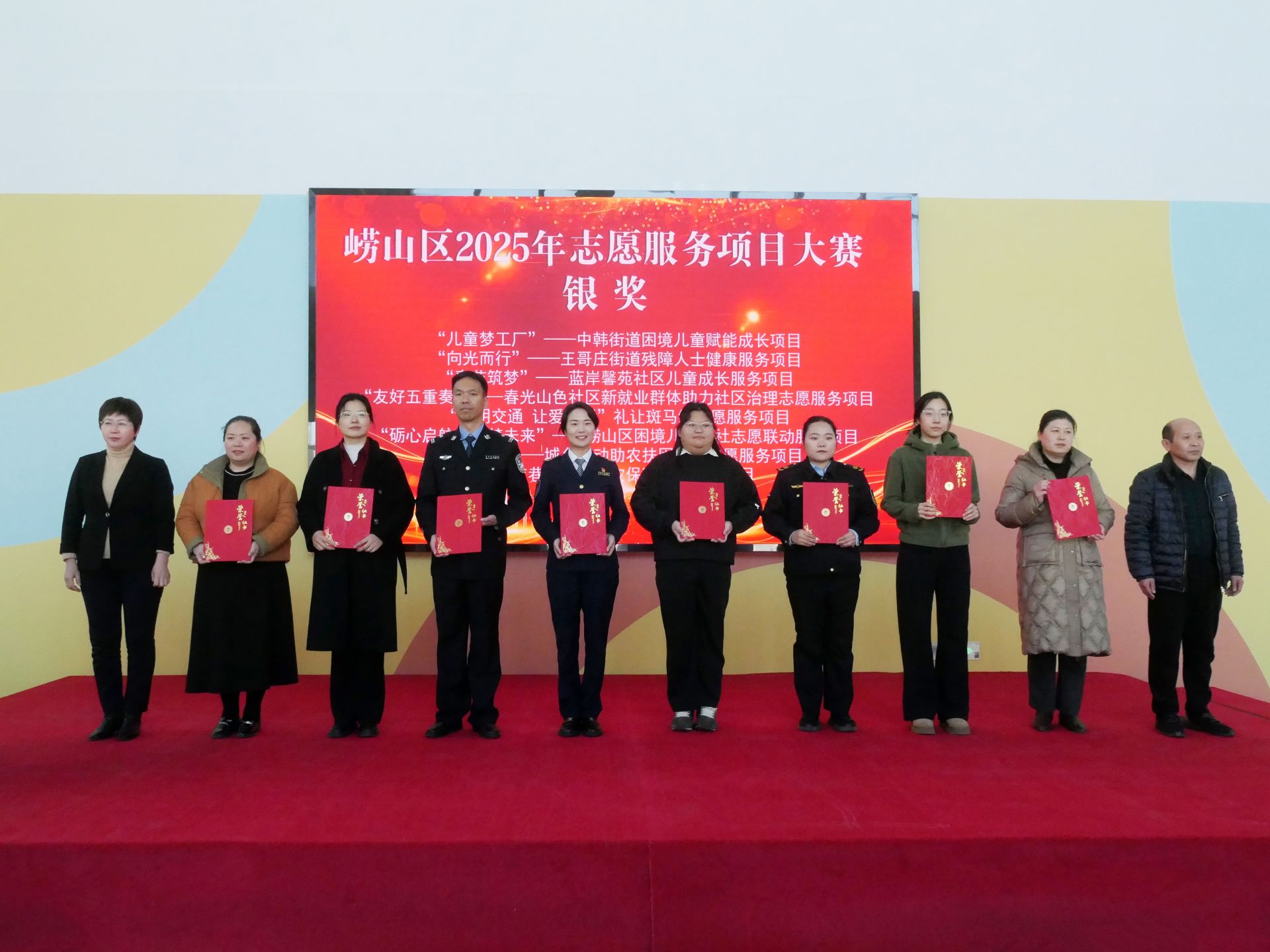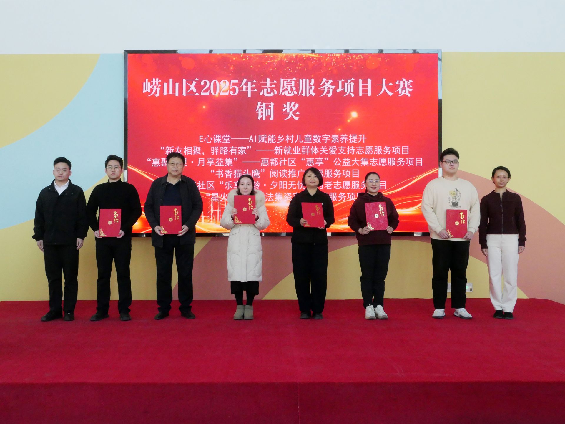 現(xiàn)場(chǎng),與會(huì)領(lǐng)導(dǎo)分別為嶗山區(qū)2025年志愿服務(wù)項(xiàng)目大賽金、銀、銅獎(jiǎng)項(xiàng)目進(jìn)行頒獎(jiǎng)。“巨峰映山紅”高山應(yīng)急救援志愿服務(wù)項(xiàng)目、護(hù)“星”計(jì)劃——社區(qū)孤獨(dú)癥青少年及家庭照料者關(guān)愛志愿服務(wù)項(xiàng)目、康城社區(qū)“暖心行”關(guān)愛新就業(yè)群體志愿服務(wù)項(xiàng)目作為代表分享了他們?cè)诓煌I(lǐng)域的志愿實(shí)踐和暖心故事。