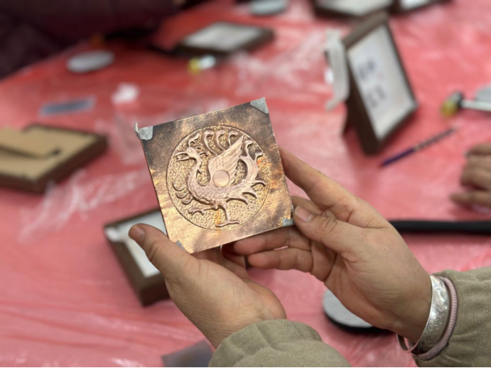 “這場活動太有意義了!既能學到傳統文化知識,又能親手制作非遺銅拓畫。”“當紋樣在銅板上完整顯現時,我心中的成就感和對傳統文化的敬意油然而生。”活動尾聲,居民們捧著自己的銅拓作品,臉上洋溢著成功的喜悅,話語中滿是對傳統文化的認同與贊嘆。
