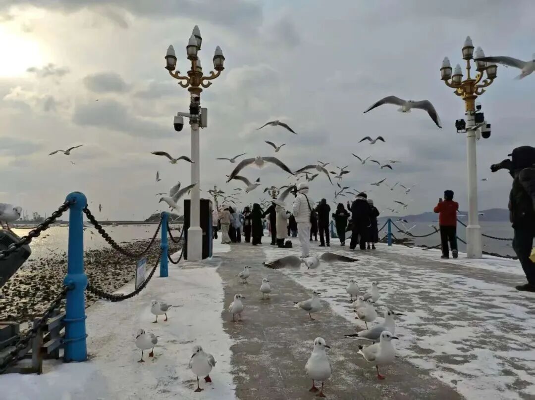 棧橋邊,鷗鳴與歡笑交織,