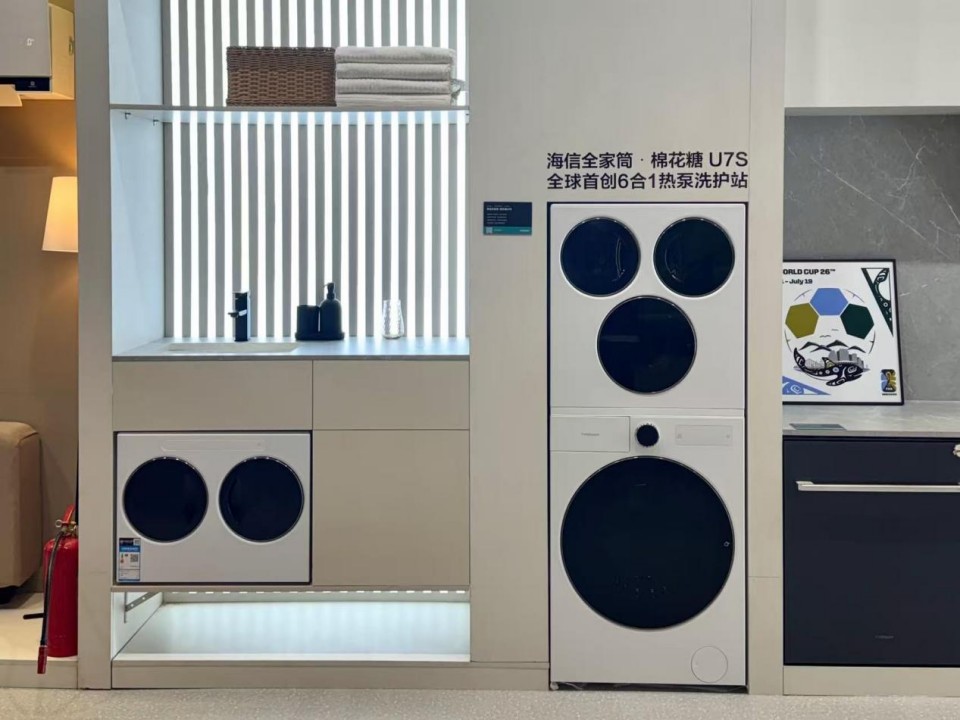 繼2017年全球首創(chuàng)三筒洗衣機、2025年全球首創(chuàng)4合1熱泵洗烘一體機之后,3月5日在“海信世界杯營銷暨定制產(chǎn)品發(fā)布會”上,海信洗衣機再次發(fā)布顛覆性創(chuàng)新產(chǎn)品。全球首創(chuàng)6合1熱泵洗護站——海信全家筒 · 棉花糖U7S四筒洗衣機,同步為年輕一代用戶推出線上爆款新品——海信全家筒 · 大薄荷E5S四筒洗衣機。新一代全家筒首創(chuàng)集成在洗衣機里的洗鞋機,并跨越升級AI宙斯熱泵 3.0 技術(shù),烘干效率提升32%,并以“自由組合 衣鞋同凈”的顛覆性設(shè)計,在 0.5m3 的空間內(nèi)實現(xiàn)全家衣物、鞋子的“0手洗、0等待、0 交叉”,從分類、健康、護理、體驗四大維度進行升級,讓用戶體驗到 “從上到下、從里到外、從頭到腳” 全身分區(qū)健康洗護躺平式自由。