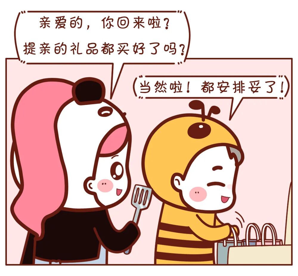 我問肥蜂:“親愛的,你回來啦?提親的禮品都買好了嗎?”