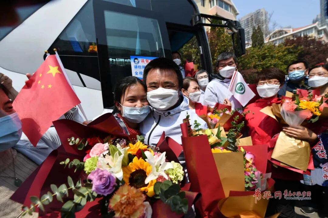 2020年3月21日,青島市首批援鄂醫(yī)療隊、青島市市立醫(yī)院的8名醫(yī)務(wù)人員,以及青島市第二批援鄂醫(yī)療隊、青島市中心醫(yī)院的12名醫(yī)務(wù)人員返魯。
