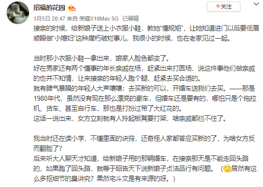 聽說,這是因為當地風俗,給新娘穿小衣服小鞋是下馬威,教育她進門就要“懂規矩”。