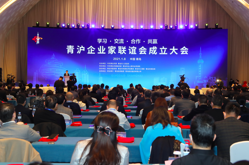 短短半年后,2021年1月8日,青滬企業家聯誼會成立大會在青島國際會議中心舉行,來自普洛斯、月星集團、益海嘉里等百余位上海企業家,海爾、特銳德、新華錦等百余位青島企業家,以及青島赴上海專業實訓干部等300余人共同見證。