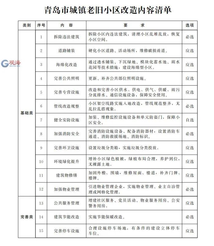 青島市城鎮(zhèn)老舊小區(qū)改造內(nèi)容清單