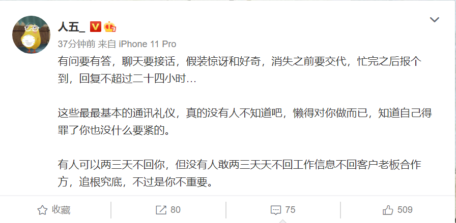雖說已經(jīng)過了談戀愛要求對方秒回的年紀(jì),但發(fā)出去的消息還是會期待一個回應(yīng),這應(yīng)該是人際關(guān)系里的常識吧?
