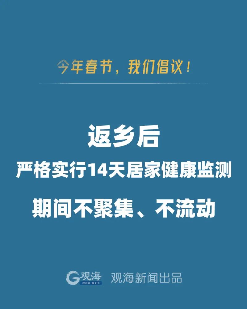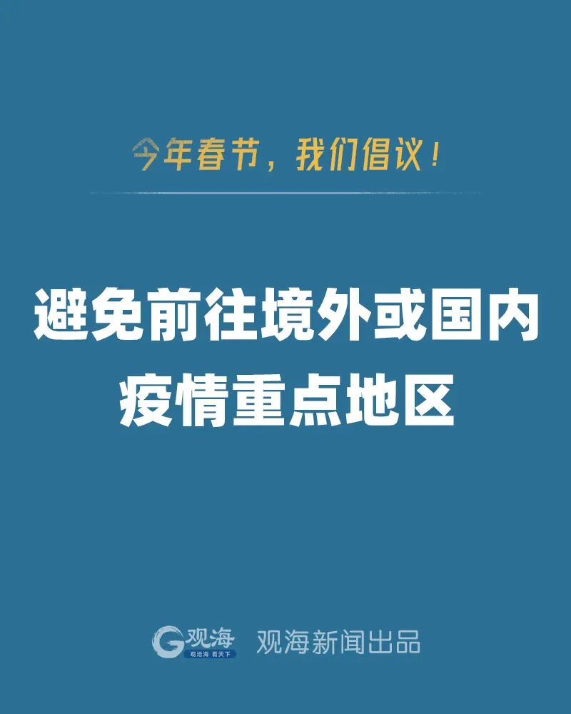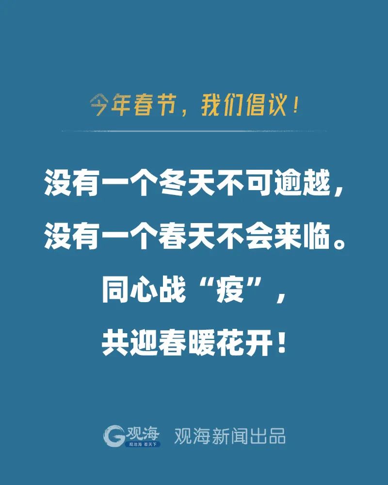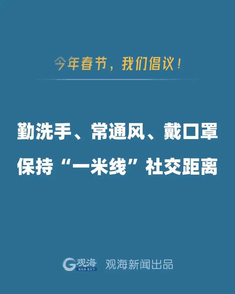 今年春節(jié),我們倡議! 2021-01-21 13:06 青島日報社/觀海新聞 0 春節(jié)臨近,疫情防控任務依然艱巨繁重。 今年春節(jié),我們倡議! 青島人,一起轉(zhuǎn)發(fā)倡議! 設計丨王雯雯 李東冉(實習) 責任編輯:王鳳一