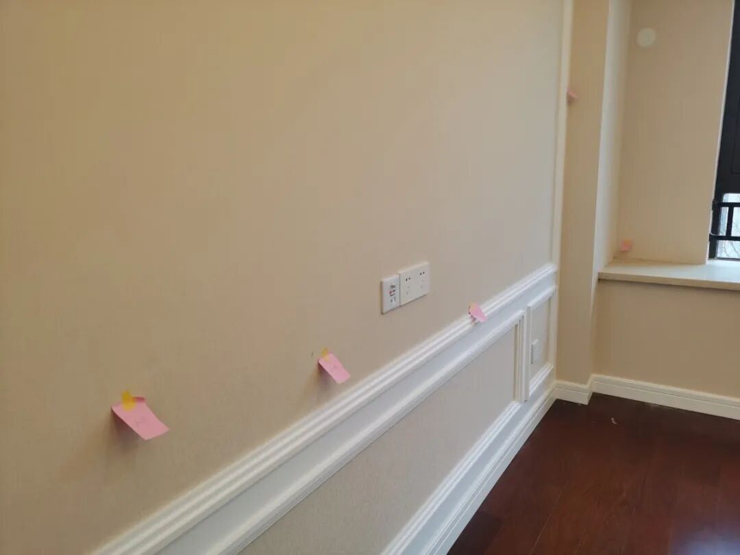 一邊,岳工正在拿著手電筒仔細檢查入戶門:碰傷劃痕3處,門鎖舌蓋劃手,門框與墻面縫隙明顯,下門檻與地面縫隙明顯……光是入戶門一項就出現了6個問題。“這個入戶門問題是真不少。”岳工說。戶內門窗也出現了不少問題:主臥更衣間洞套與墻面閃縫明顯,北臥窗臺板兩頭出墻與壁紙閃縫,主臥窗臺板空鼓、接縫粗糙,主臥窗膀壁紙破損明顯,主臥窗護欄扣蓋安裝不牢……