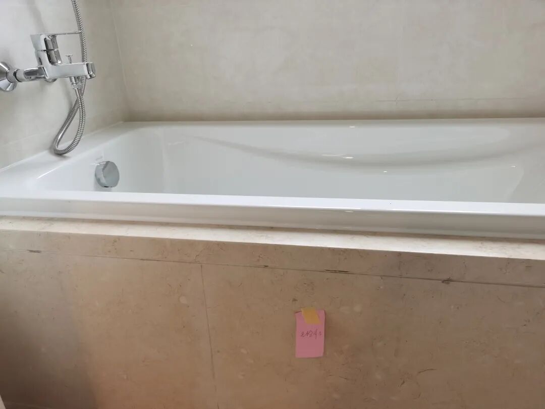 在主衛浴盆下方,驗房師貼了一張字條:無檢修口。據介紹,為方便檢修浴盆,下方必須安裝檢修口,或者將下方的某一塊瓷磚后方做空,內部放一塊備用磚,驗房師也可以通過檢修口檢查浴盆下水管是否垂直。當浴盆堵塞時,直接從檢修口維修,或者將專門做空的瓷磚打碎從相應位置檢修,完成后貼上備用磚,而魏先生家既沒有檢修口也沒有預留檢修位置,如果入住后浴盆堵塞檢修工作量將大大增加。