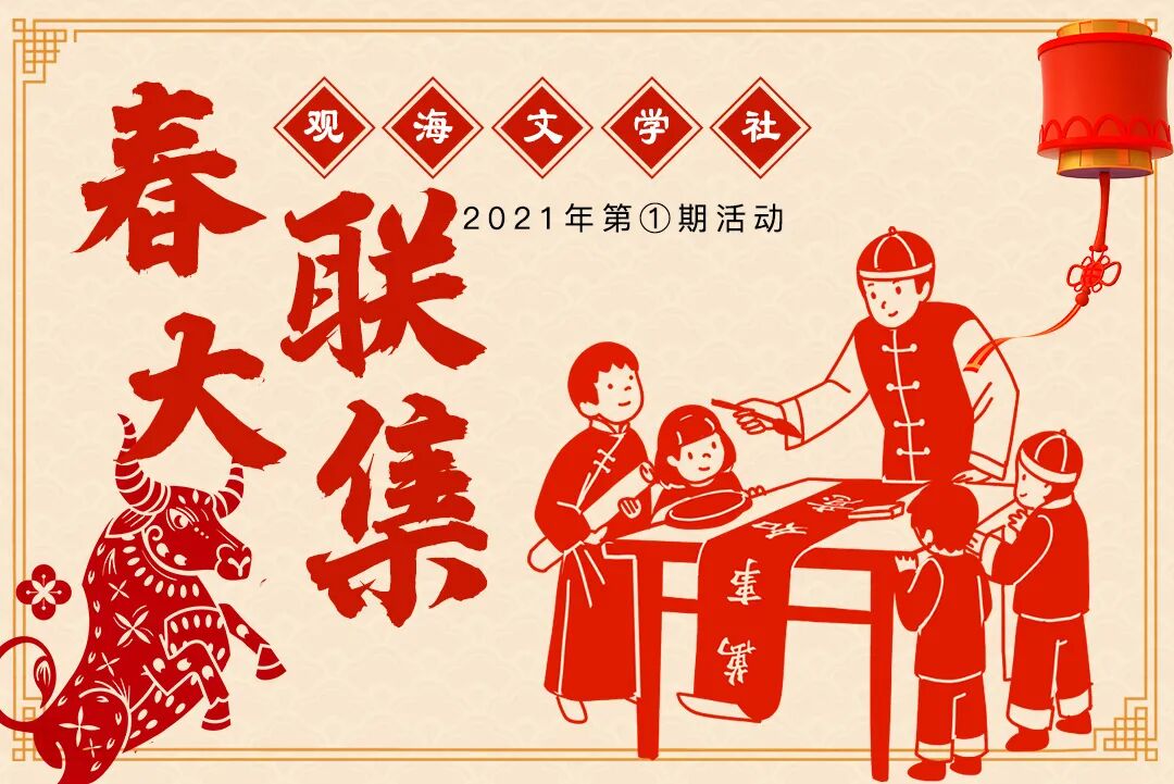 如果你是楹聯(lián)高手、詩詞達人,把你原創(chuàng)撰作的春聯(lián)向青報君砸來吧!選題包括但不限于以上范圍。觀海編輯部將擇優(yōu)制作新春妙聯(lián)電子小游戲,春節(jié)期間發(fā)布傳播,入選者支付“潤筆”,贈送觀海精美臺歷一份。
