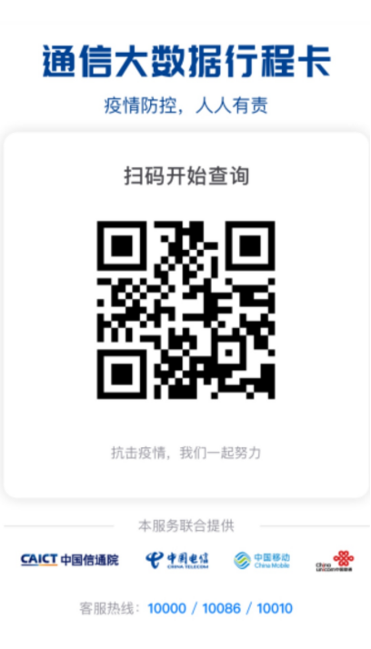 外來人員入院(室、店)時,持手機掃一掃通信大數(shù)據(jù)行程卡,輸入手機號,獲取并輸入驗證碼后,可顯示14天內(nèi)行程動態(tài)。