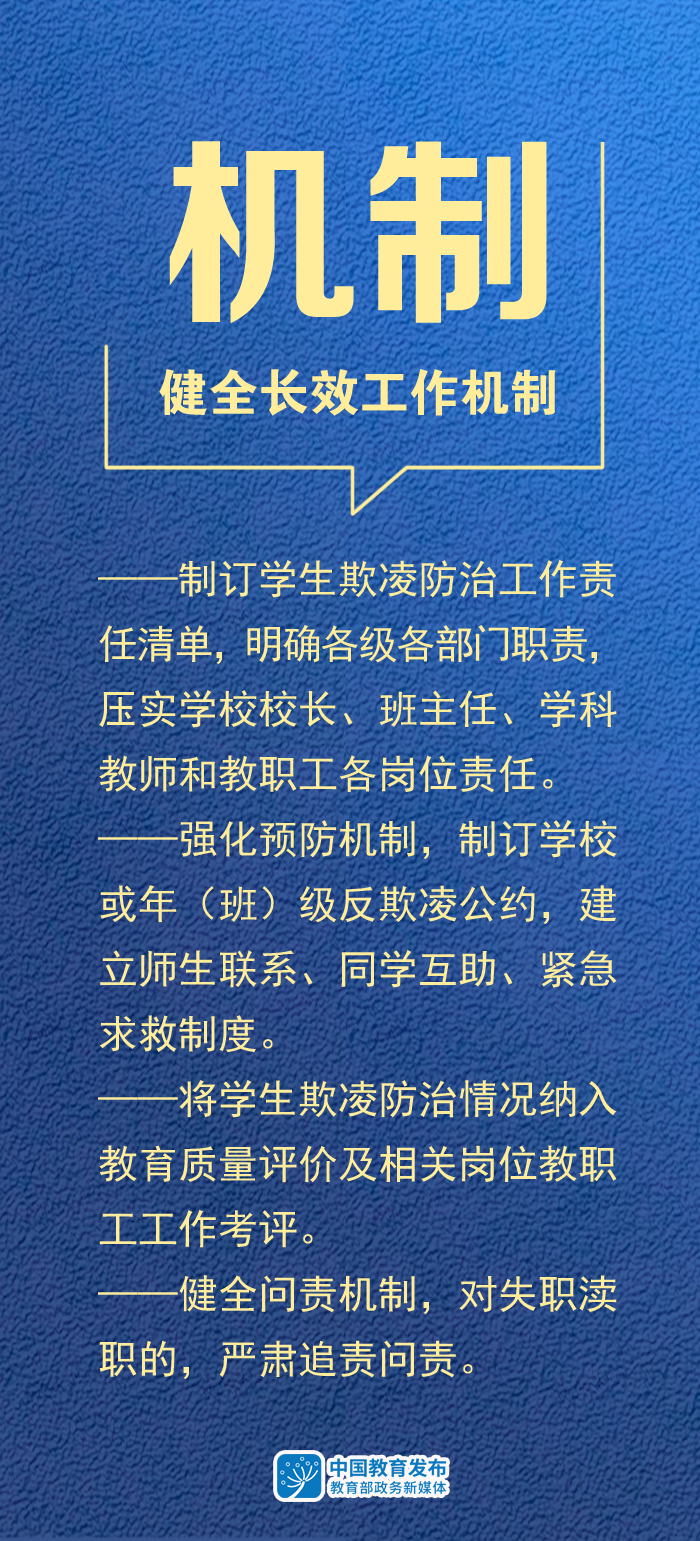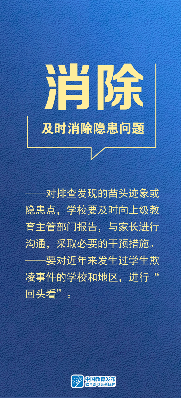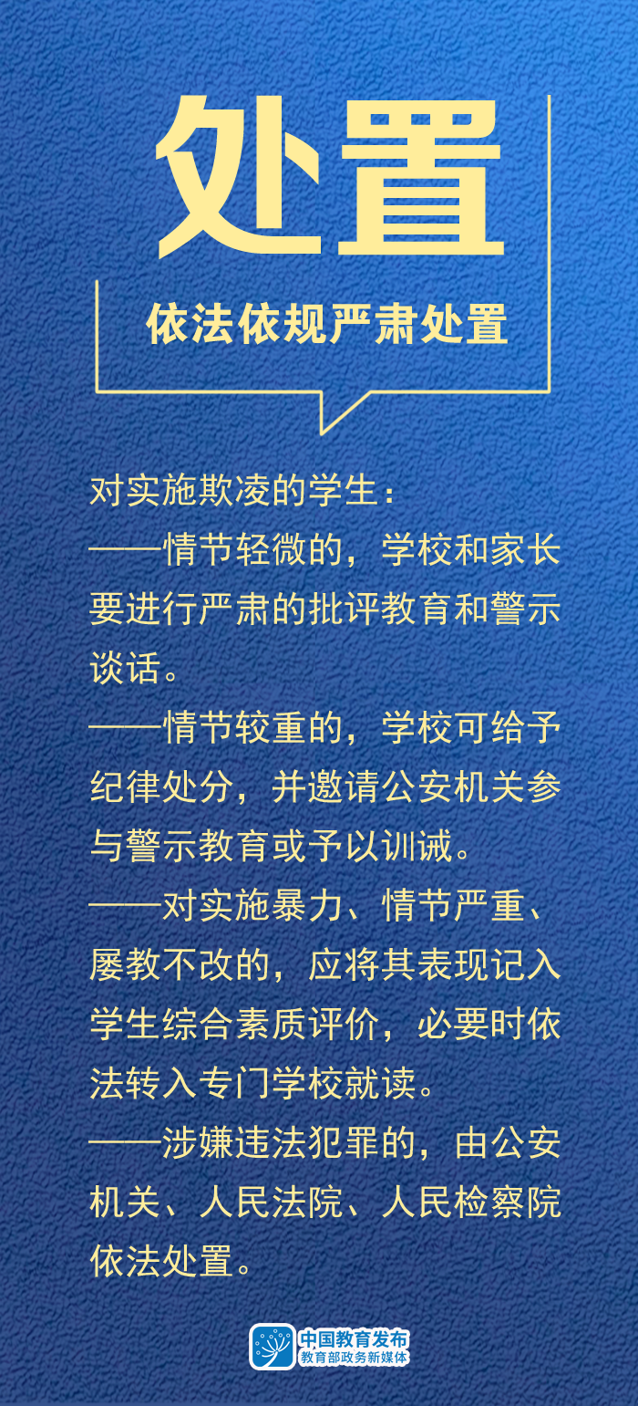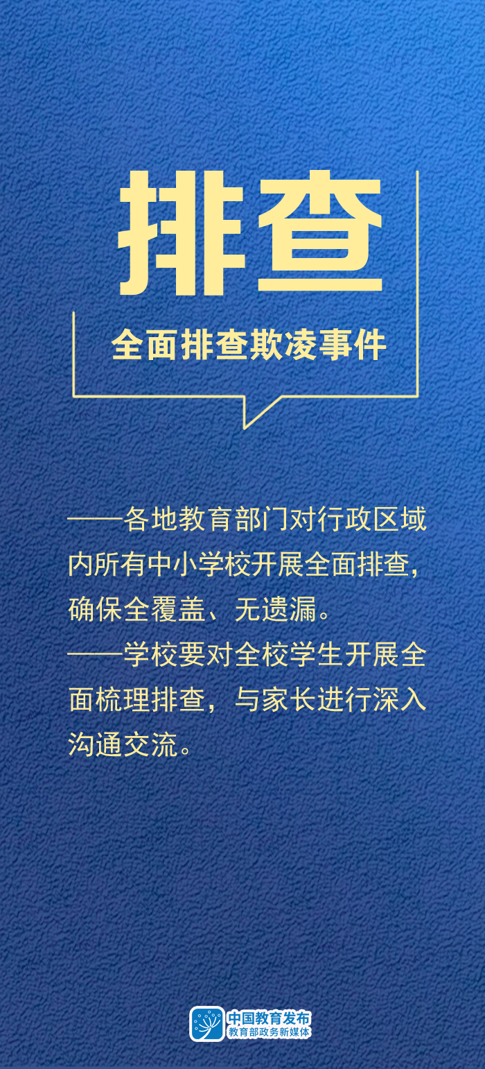 欺凌其他同學將被依法依規嚴肅處置!“欺凌防治”被納入教職工工作考評 2021-01-29 08:16 青島日報社 / 觀海新聞 0 日前,教育部印發《防范中小學生欺凌專項治理行動工作方案》,啟動開展防范中小學生欺凌專項治理行動。重點工作任務有哪些?我們為你“劃重點”↓↓↓ (來源 | 中國教育發布 文字據《防范中小學生欺凌專項治理行動工作方案》) 責任編輯:楊海濤 (作者:楊海濤)
