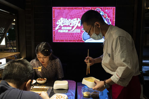 2020年9月7日,成都一家火鍋店的工作人員在為食客打包食材。