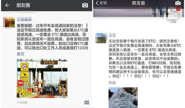 春節回家除了公共交通出行,很多人也會選擇自駕回家,ETC作為快速通道,受到了很多人喜歡。但幾乎每年都會有所謂的“溫馨提示”在網上傳播,其稱“從ETC進就要從ETC出,否則將額外收費”。