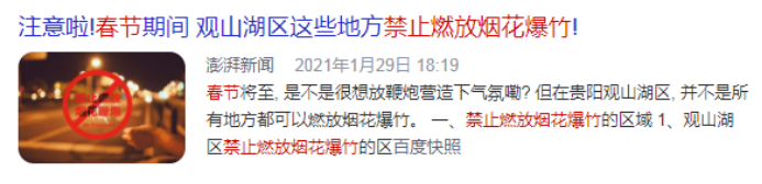 春節作為傳統節日,很多人會通過燃放煙花爆竹來慶祝春節。然而,煙花爆竹燃放時釋放出的大量顆粒物和硫化物,會加劇霧霾程度、損害空氣質量、影響人體健康,同時還會帶來噪音污染、人身、火災等安全隱患。因此,多地都發出了禁止燃放煙花爆竹的通知。