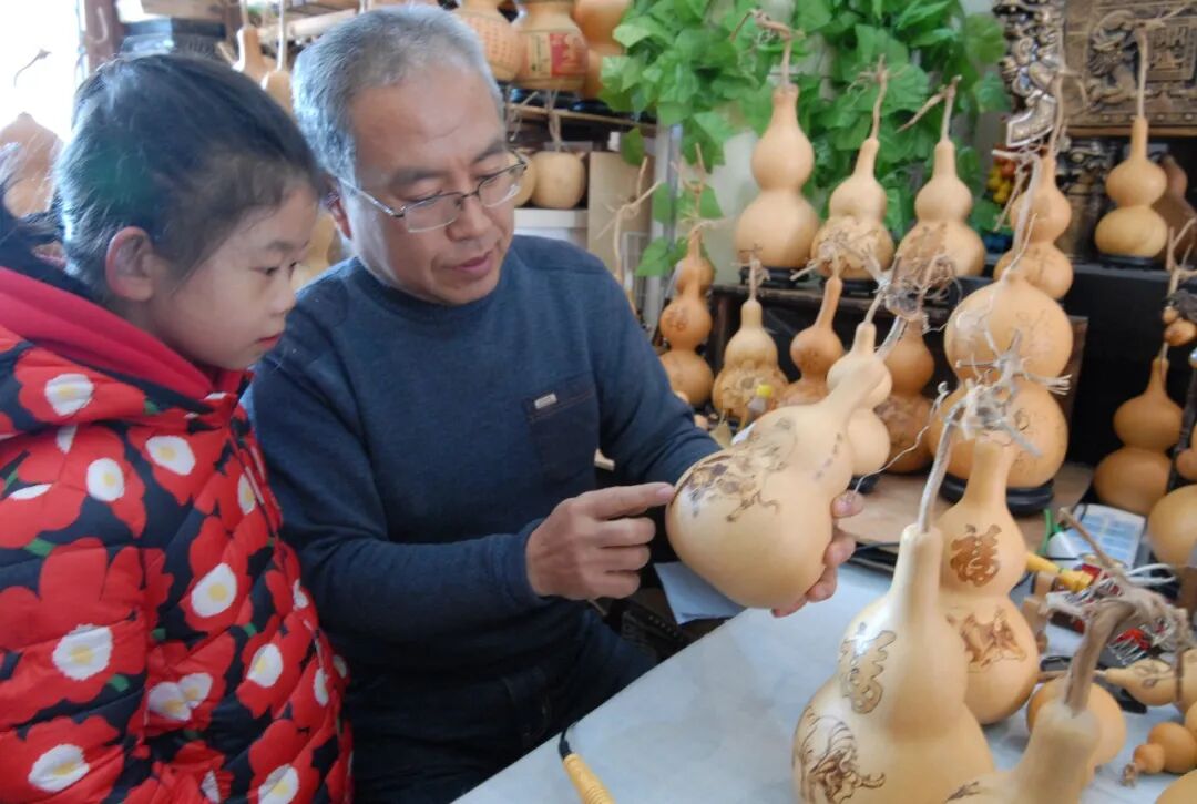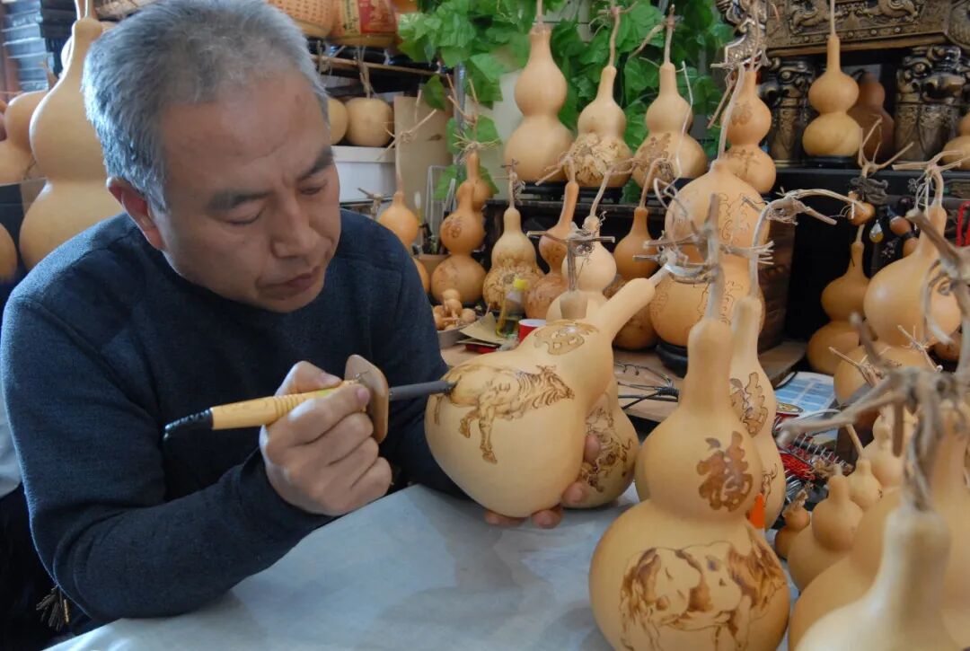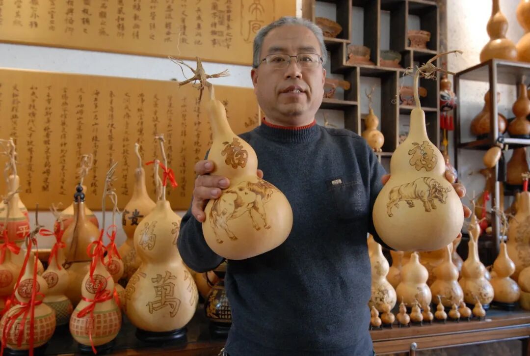 隨著春節(jié)臨近,黃旭烙制的牛氣沖天、金牛納福等“?!焙J走俏市場,越來越多寓意好的葫蘆也是銷量陡增。(張濤)