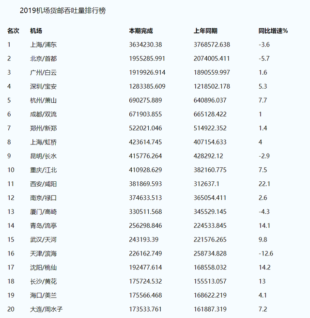 數據顯示,2019年國內貨郵吞吐量在20萬噸以上的共有16個機場,吞吐量之和占全國總量的80%,是國家航空貨運發展的未來希望所在。