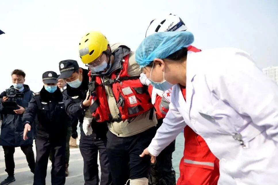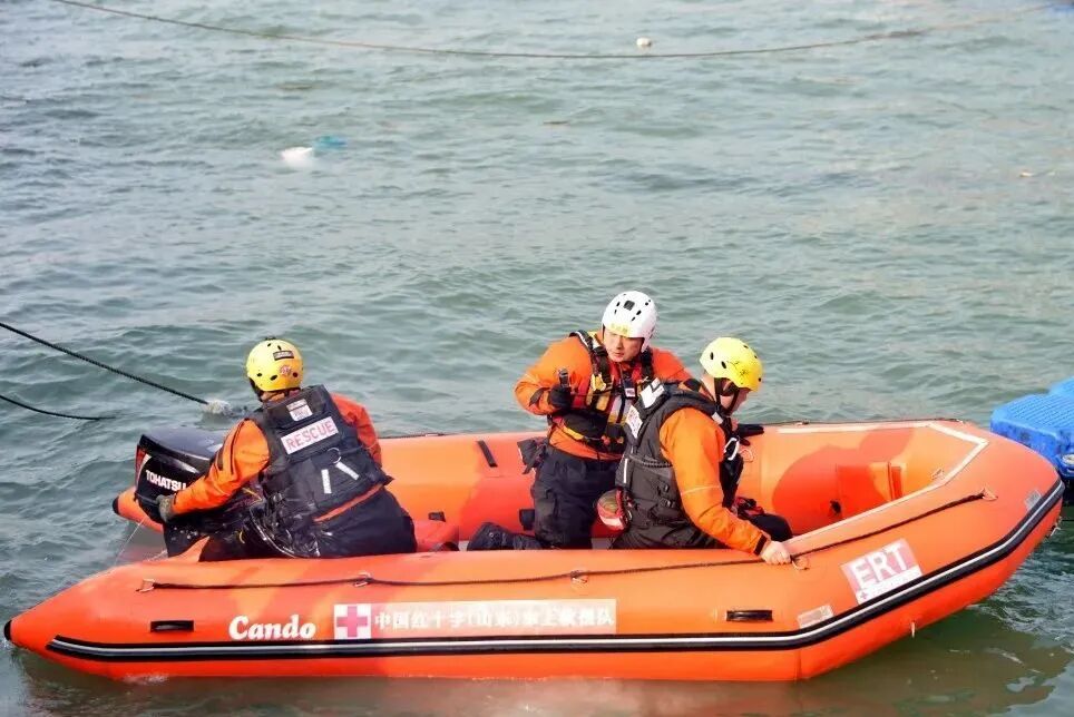 現場,救援民警會同藍天救援隊專業力量,立即制定救援方案。確定沖鋒舟出海的位置,救援隊員駕駛沖鋒舟迅速出海實施救援。