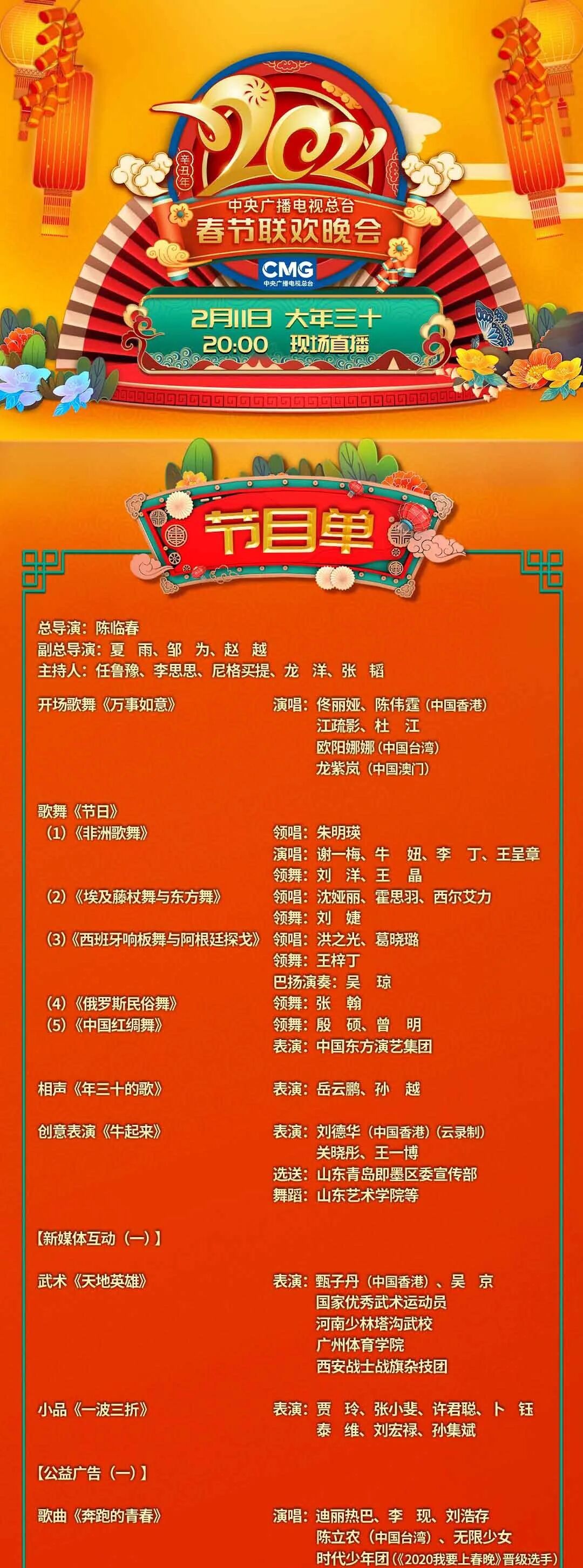 2月10日,央視春節聯歡晚會公布了節目單,可謂:群星云集、青春活力。