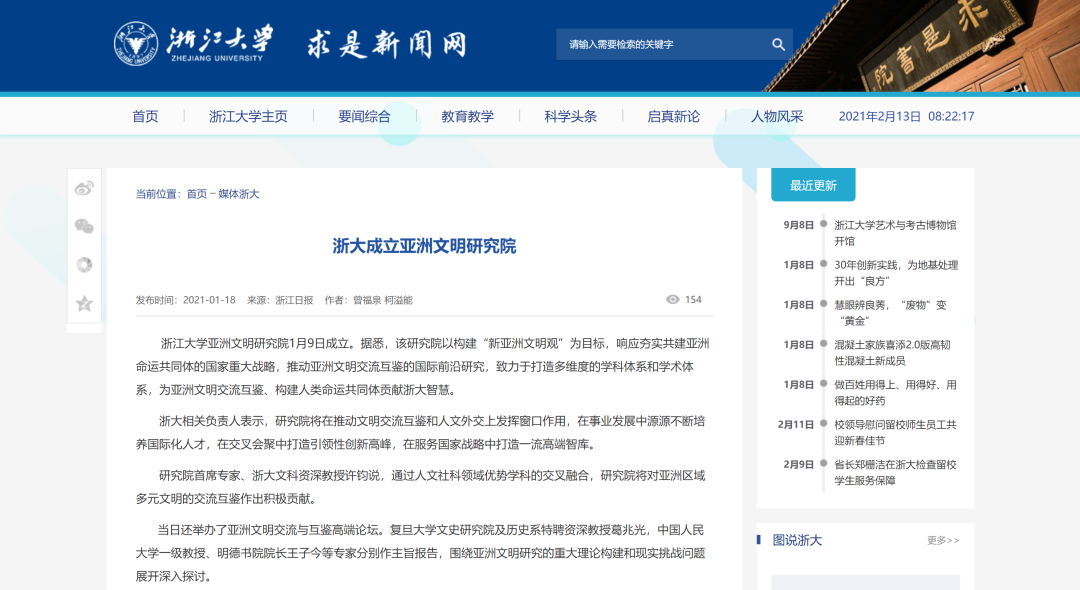 據了解,浙江大學亞洲文明研究院成立于2021年1月9日。