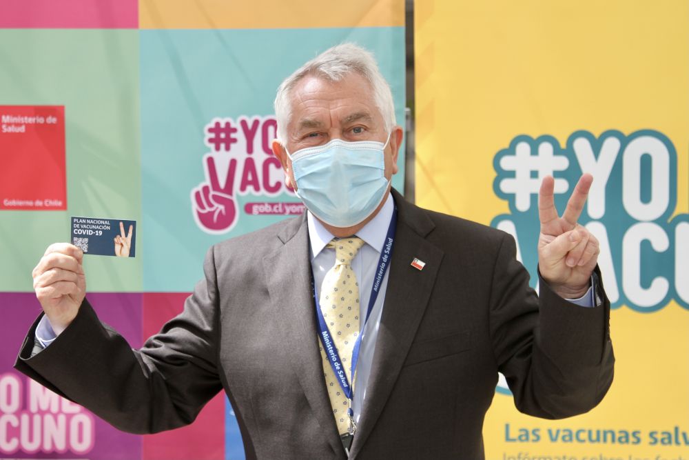 2月12日,智利衛生部長帕里斯在首都圣地亞哥接種第一劑中國科興公司研發的新冠疫苗后,展示自己的疫苗接種卡。新華社發