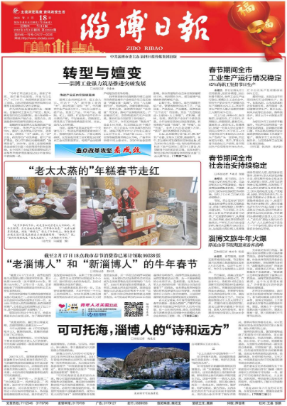 淄博日報頭版頭條刊發《轉型與嬗變——淄博工業強力筑基推進突破發展》,回顧過去三年來淄博從“老”破題,向“新”出發,推動傳動產業優存量、新興產業擴增量,奮力書寫新舊動能轉換的“淄博答卷”。