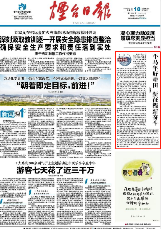 煙臺日報“煙臺今語”欄目刊發署名姜春康的評論《牛馬年好耕田 新征程新奮斗》。