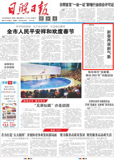 日照日報刊發評論員文章《新春再展新氣象》。評論指出,今天是春節后的首個工作日,我們應“收心歸位”、打起精神,在新春里再展新氣象、實現新作為。