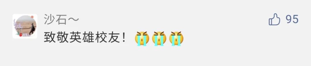 在高校官微留言區,網友紛紛向英雄致敬,“一張張照片,我看到了校友眼神的剛毅和堅定”。
