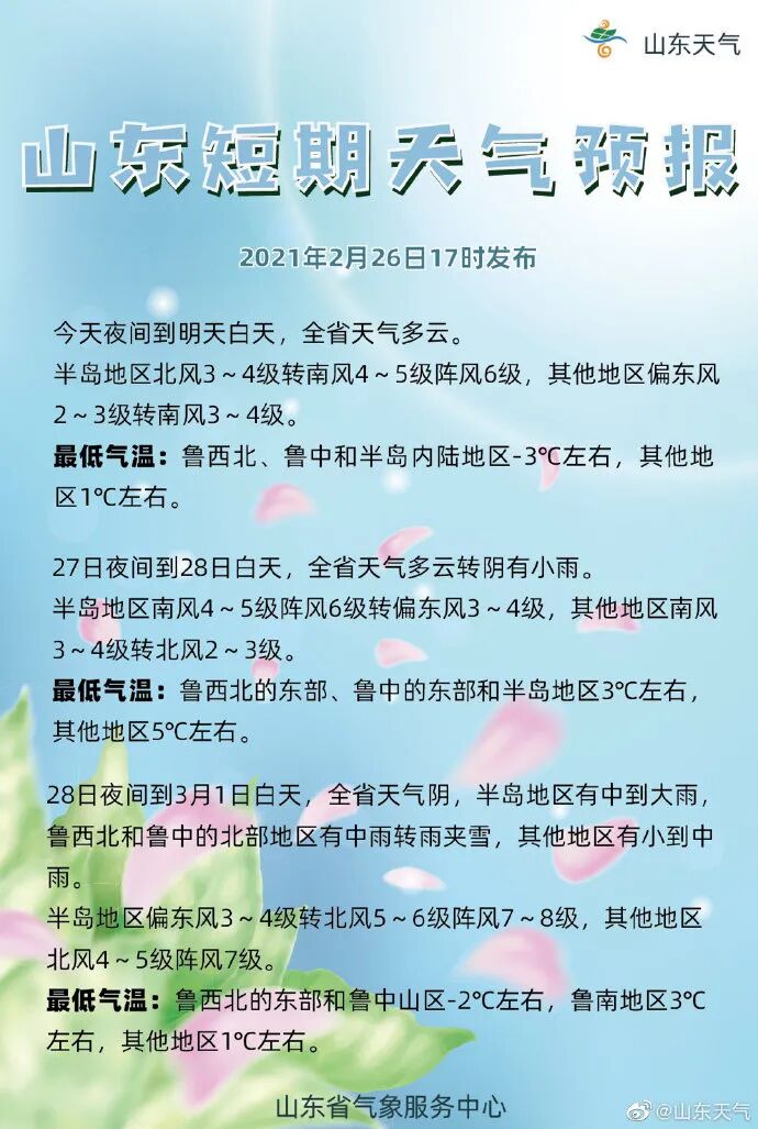 2月26日下午,青島市氣象臺發布預報,又有明顯降水!