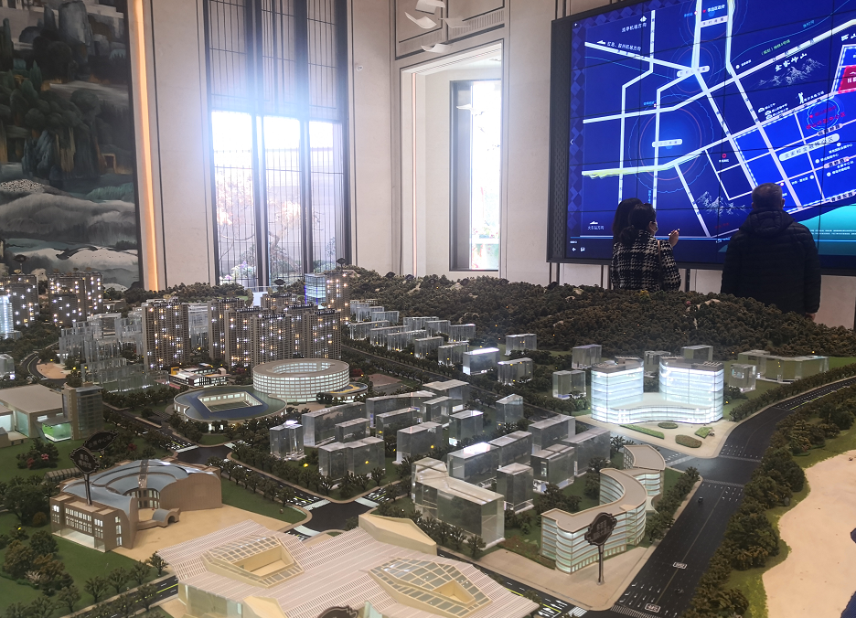 ■嶗山區佳源華府營銷中心,消費者正在了解樓盤區位。李鵬飛 攝