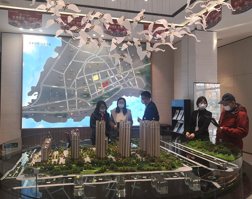 ■市北區遠洋萬和城售樓處,消費者正在看盤。李鵬飛 攝