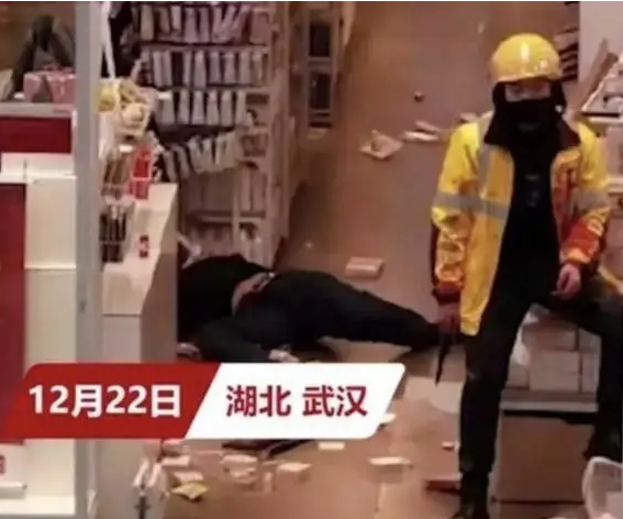 一棍子就把老杜的頭盔砸碎了,第二棍子下去,手無寸鐵的老杜躺在了冰冷的水泥地上。