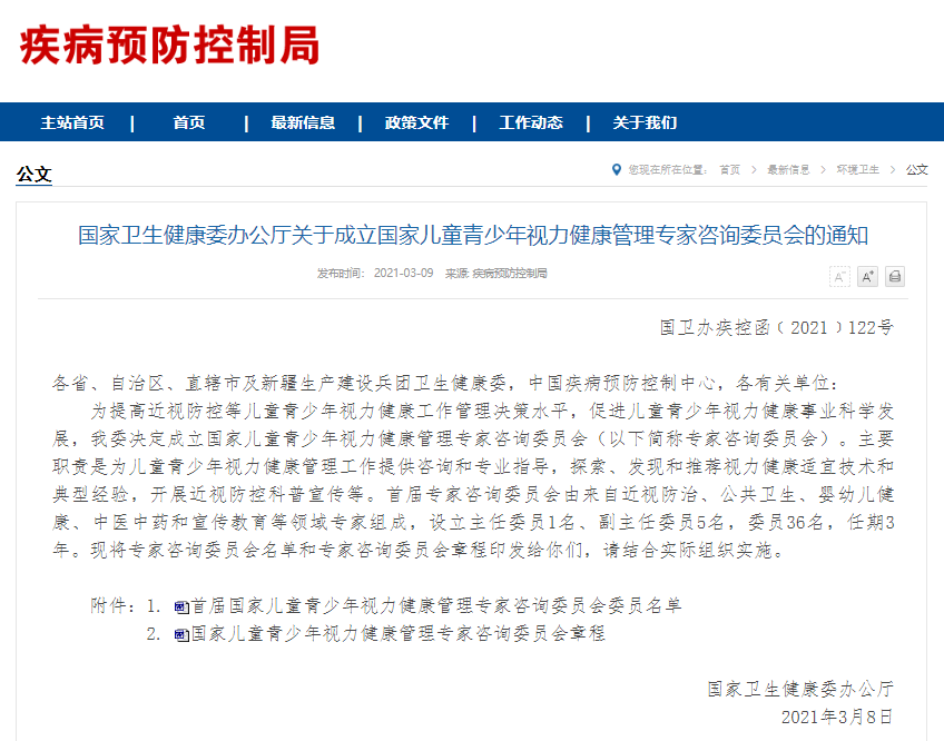 近日,國家衛健委發布《國家衛生健康委辦公廳關于成立國家兒童青少年視力健康管理專家咨詢委員會的通知》,具體原文如下: