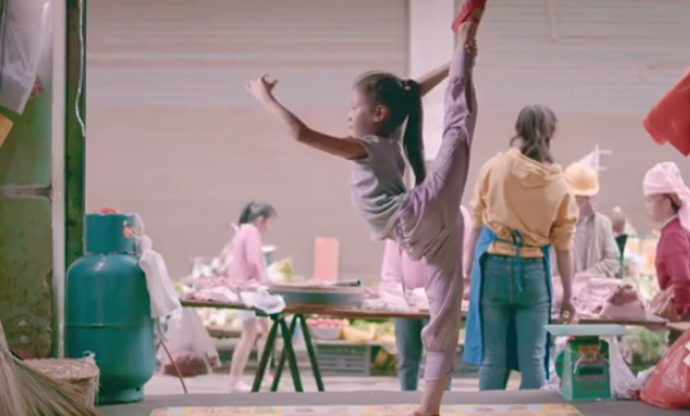 她清亮堅定的眼神,優(yōu)美的芭蕾舞動作,使得高雅的藝術(shù)在嘈雜的環(huán)境里毫無違和感,讓人看了熱淚盈眶。