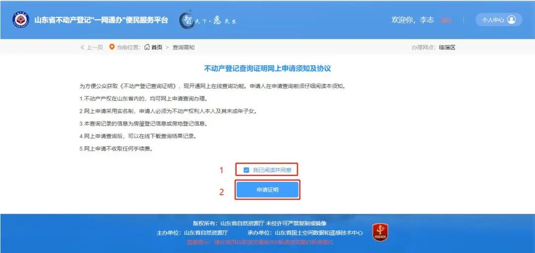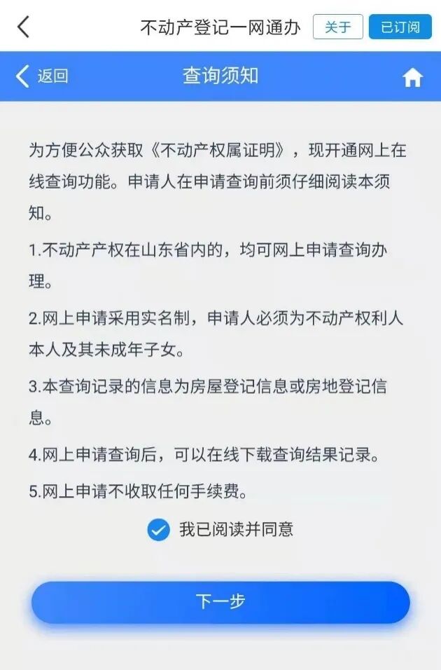 3.閱讀查詢須知并勾選“我已閱讀并同意”,點擊下一步;