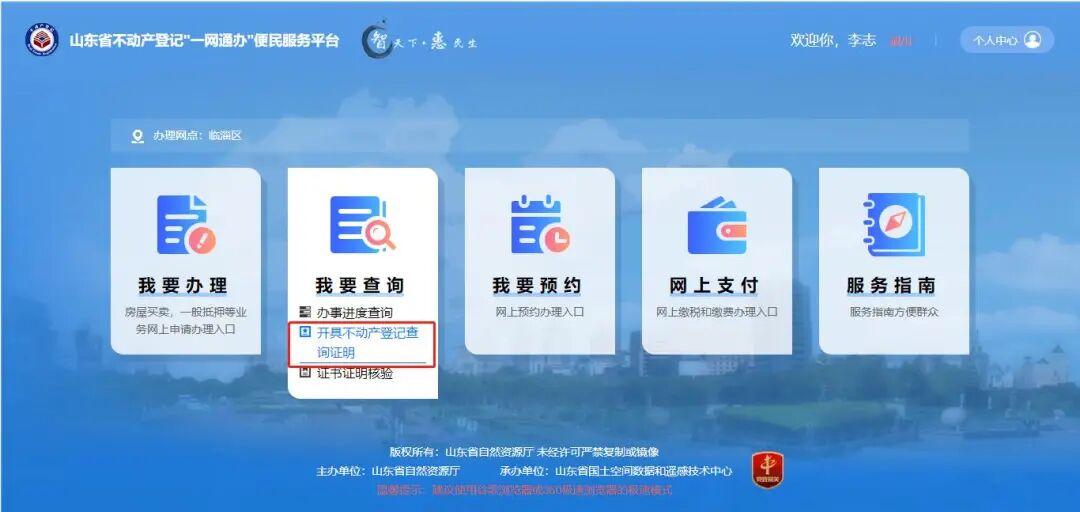 從3月12日起,山東省范圍內的不動產查詢證明網上查詢功能在不動產登記“一網通辦”平臺全面上線。申請人憑借手機或電腦就可以實現信息查詢“網上辦、掌上辦、零跑腿”,不必再花時間往返登記大廳辦理。網上查詢、打印證明已加蓋有各市縣不動產登記信息查詢專用章電子印章,與到不動產登記窗口辦理的證明具有同等法律效力。